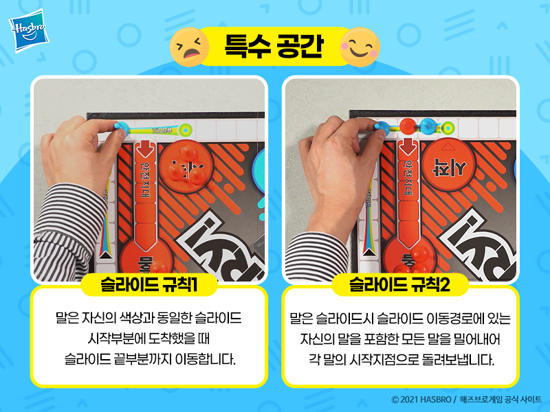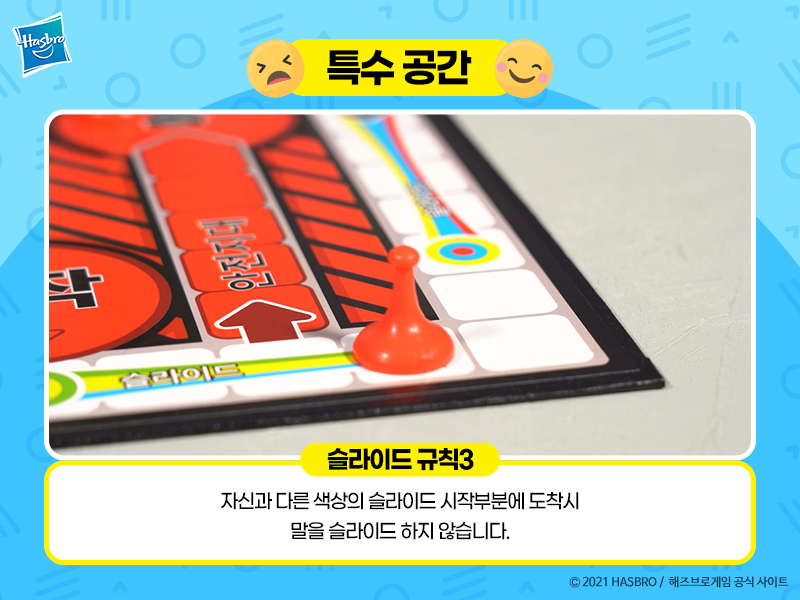 자신의 말이 자신과 동일한 색상의 슬라이드 시작 부분에 도착하였을 때