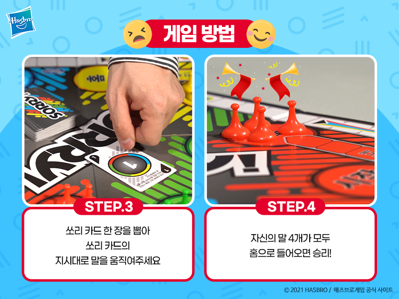 자신이 뽑은 쏘리 카드에 적힌 지시대로 말을 움직여주세요.