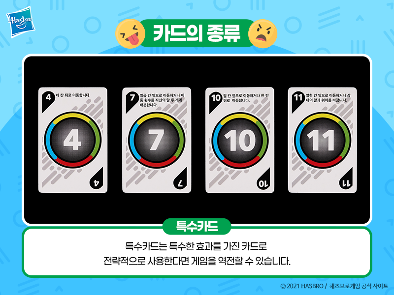 시작 지점 카드는 1번 카드 5장, 2번 카드 4장, SORRY카드 4장이 들어있습니다.
