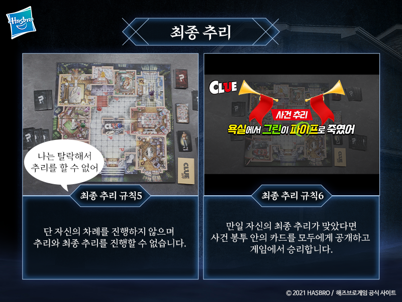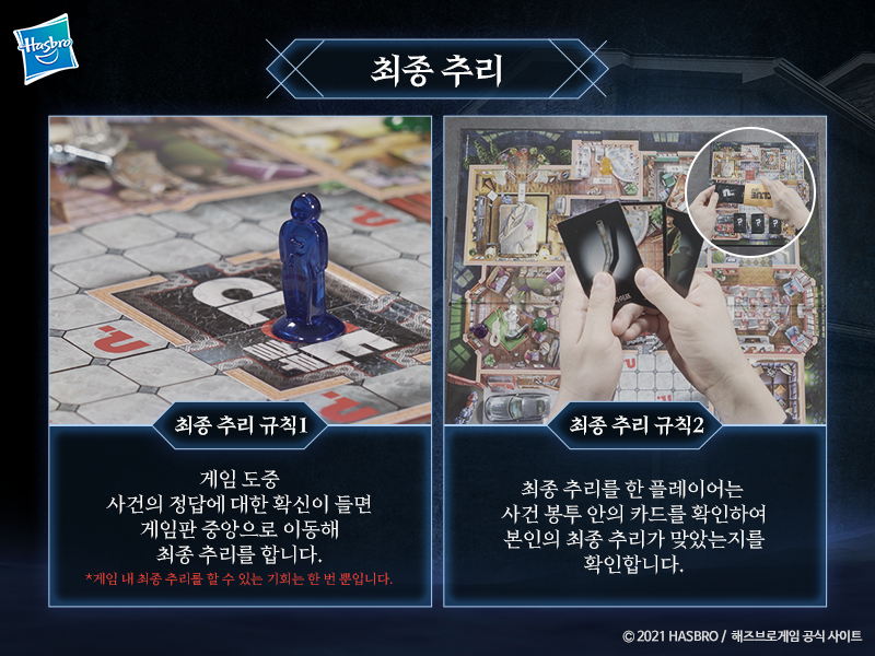 만일 자신의 최종 추리가 틀렸을 경우 최종 추리를 한 플레이어는 게임에서 탈락하게 됩니다.