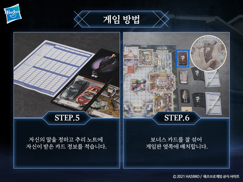 모든 플레이어에게 동일한 장수만큼 나눠준 후 추리 노트와 필기도구를 나눠줍니다.