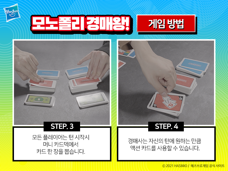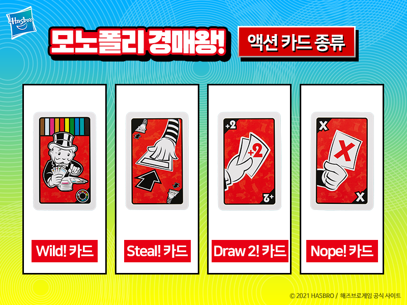 다음으로 모노폴리 경매왕의 핵심인 액션 카드의 종류와 사용법을 알려드리겠습니다.