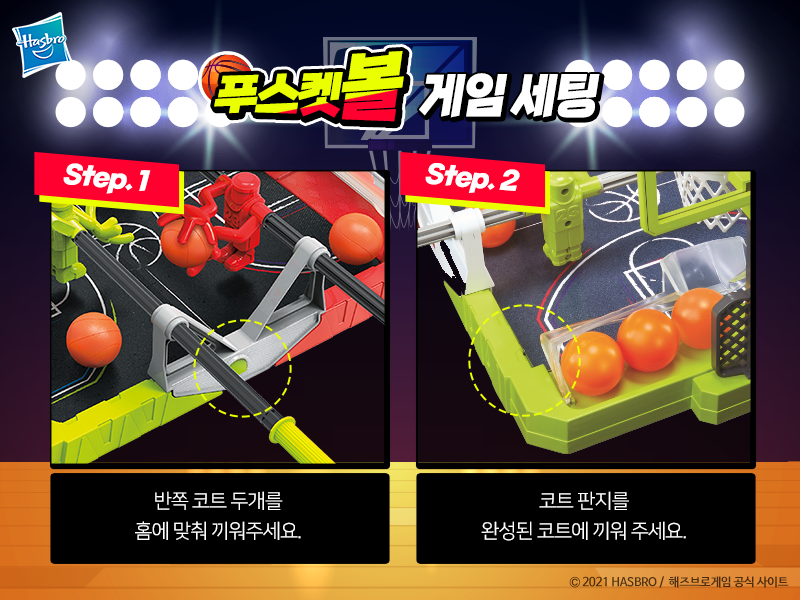 2번과 같이 농구대를 코트에 있는 홈에 맞춰 조립해주세요.