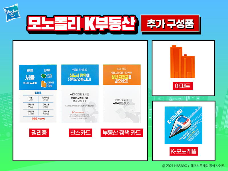 먼저 모노폴리 K부동산의 추가 구성품에 대해 알아보겠습니다.