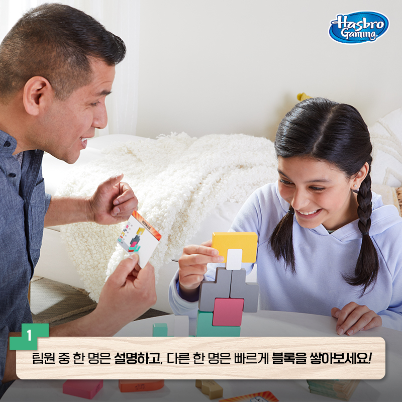 다른 팀원은 그 설명을 들은 채로 블록을 쌓습니다.